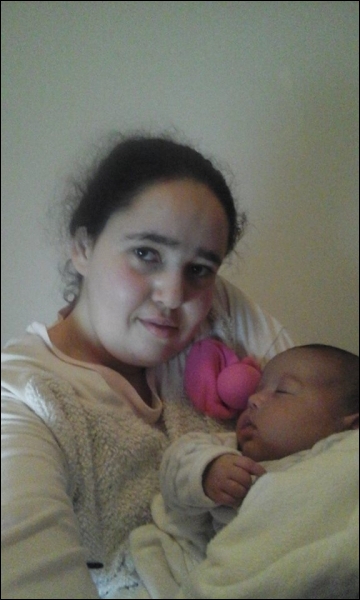 Je remets une photo que j'ai prise ce week-end dernier quand je suis allée chez ma grande sœur. Alors, le bébé que je tiens dans mon bras gauche, c'est ma nièce de deux mois.
