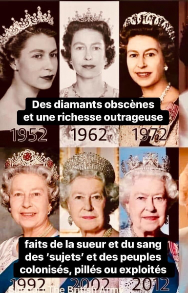En effet et il serait temps de cesser d'aduler ce genre de personnages, dont le statut héréditaire lui a permis d'amasser 370 millions de livres sterling tout au long de son règne grâce à la colonialisation… Tandis que beaucoup vivaient dans la misère et que l'Empire britannique perpétrait des massacres odieux dans les colonies, comme au Kenya, au nom de la couronne britannique…