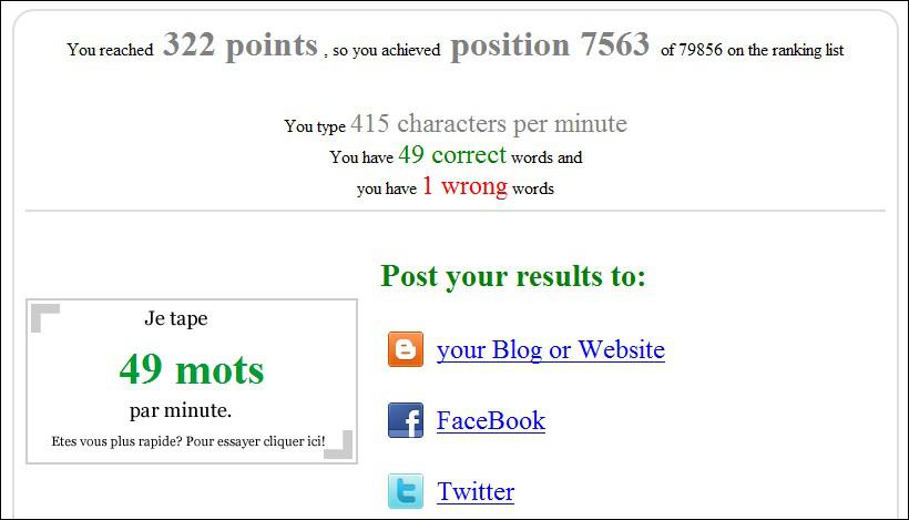 A ce propos j'amèliore mon record:65 mots/minutes;l'entrainement porte ses fruits...
