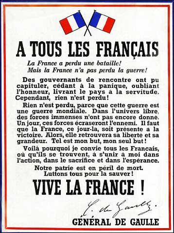 bon, pour le 18, le fameux Appel du 18 juin 1940 par le général De Gaulle