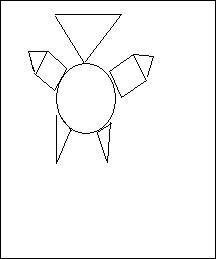 Mon bonhomme avait une tête en triangle, pointe vers le bas. Un corps tout rond, pour les bras, un carré, avec au bout un petit triangle (pour les mains) et enfin pour les jambes, deux triangles (rectangles)