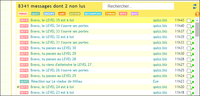 Je pouvais gagner 13-15 défizz par quiz