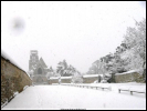 La photo est prise devant l'église, on peut voir l'épaisseur de la neige sur le mur du cimetière à gauche.