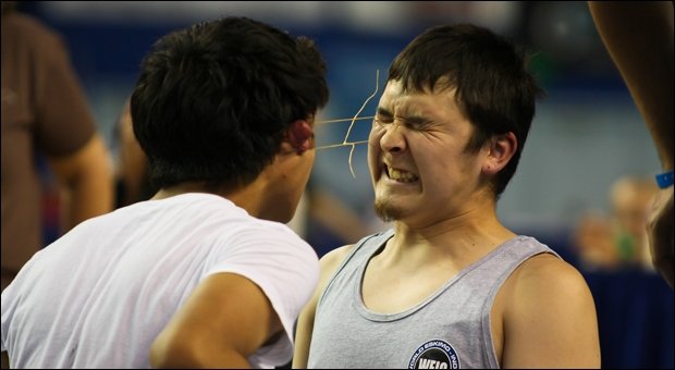 C'est le tire-oreille, pratiqué aux Olympiades "eskimo-indien" à Faibanks en Alaska ?