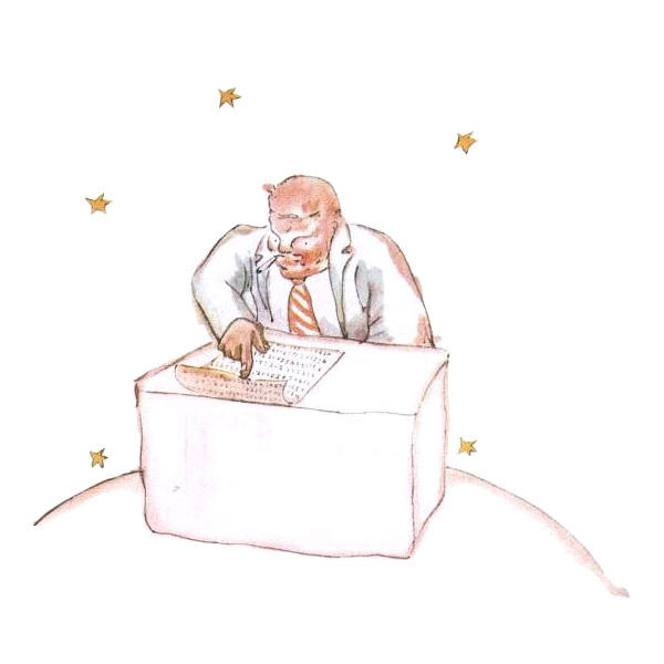 Lors de son voyage sur la quatrième planète, le petit prince fit la rencontre du businessman, un homme étrange, tellement occupé par son activité qu’il ne leva même pas la tête pour saluer l’arrivée de son visiteur.