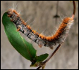La chenille est sur une feuille de chèvrefeuille