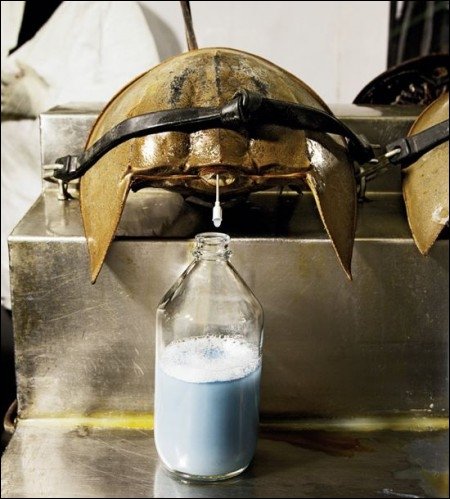 Limule, crustacé préhistorique au sang bleu, aussi appelé "crabe fer à cheval".