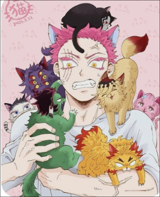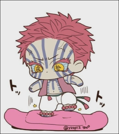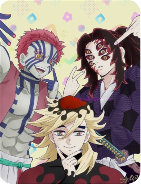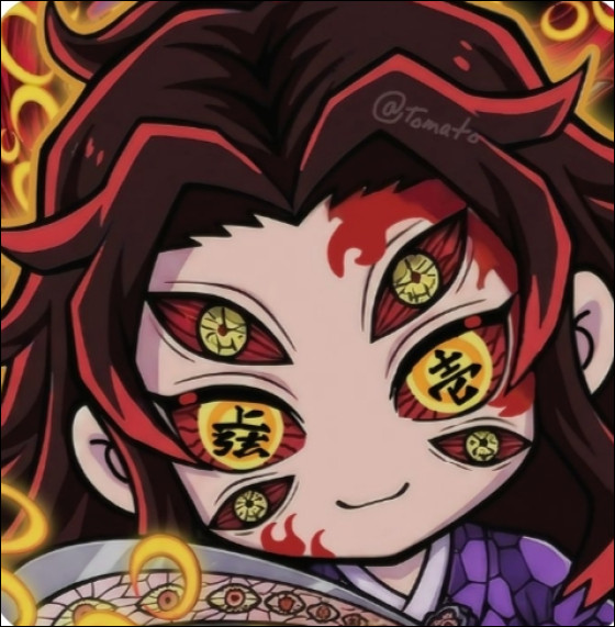 « C'est toi qui choisis les tenues des Lunes et de Muzan. Ton poste est très important, il influence le style du démon ! C'est toi qui a eu l'idée d'habiller Muzan en Michael Jackson. »